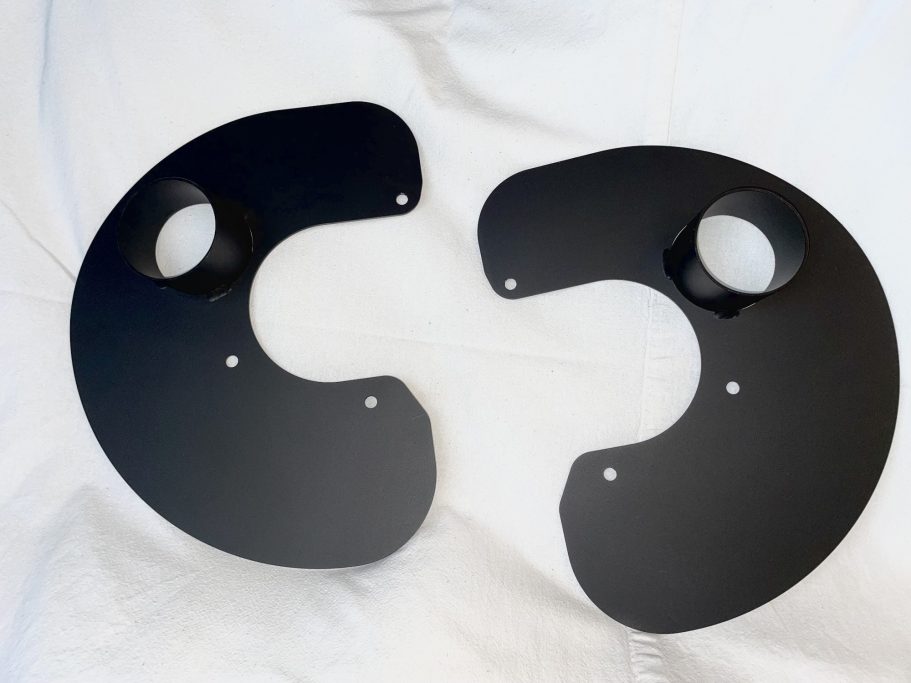 Diese Bauteile werden in der Frontstoßstange anstatt Nebelscheinwerfer montiert und führen die Luft mittels Schlauch und Adapterblech direkt zum inneren der Bremsscheibe.
