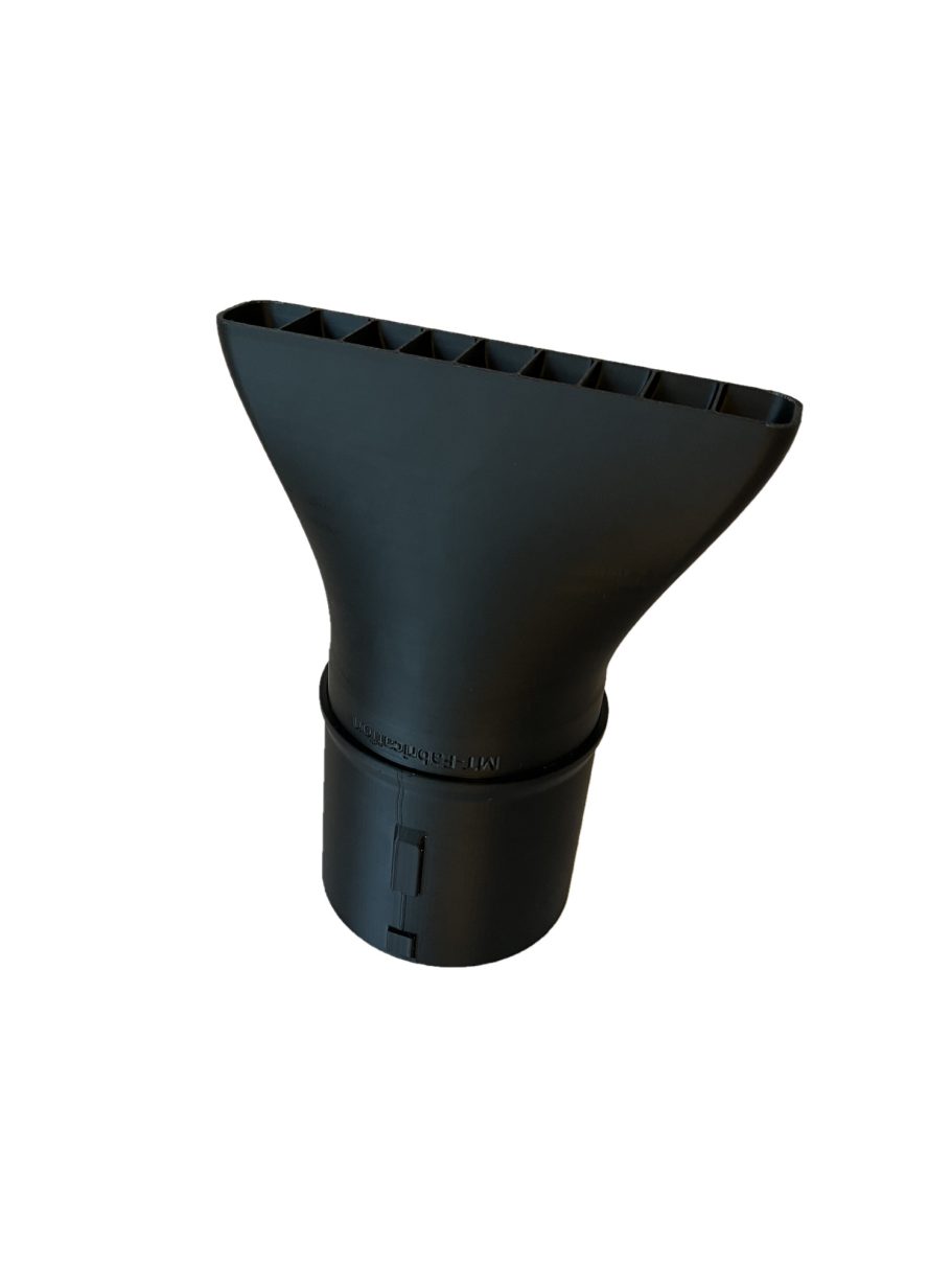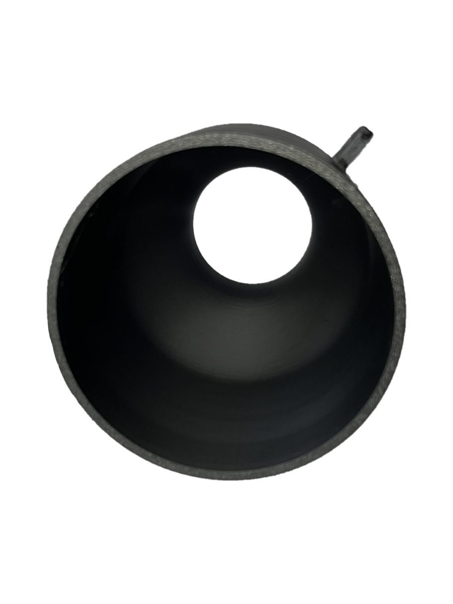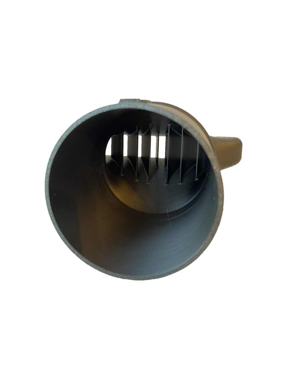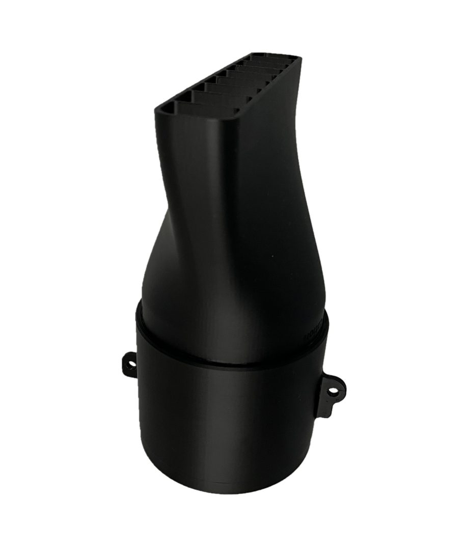 Durch die im CAD designte Form und die integrierten Finnen, wird die Luft beschleunigt und gleichmäßig verteilt. Der zweiteilige Aufbau ermöglich es den Trichter 360 Grad zu drehen und im Winkel auf die jeweilige Situation anzupassen.