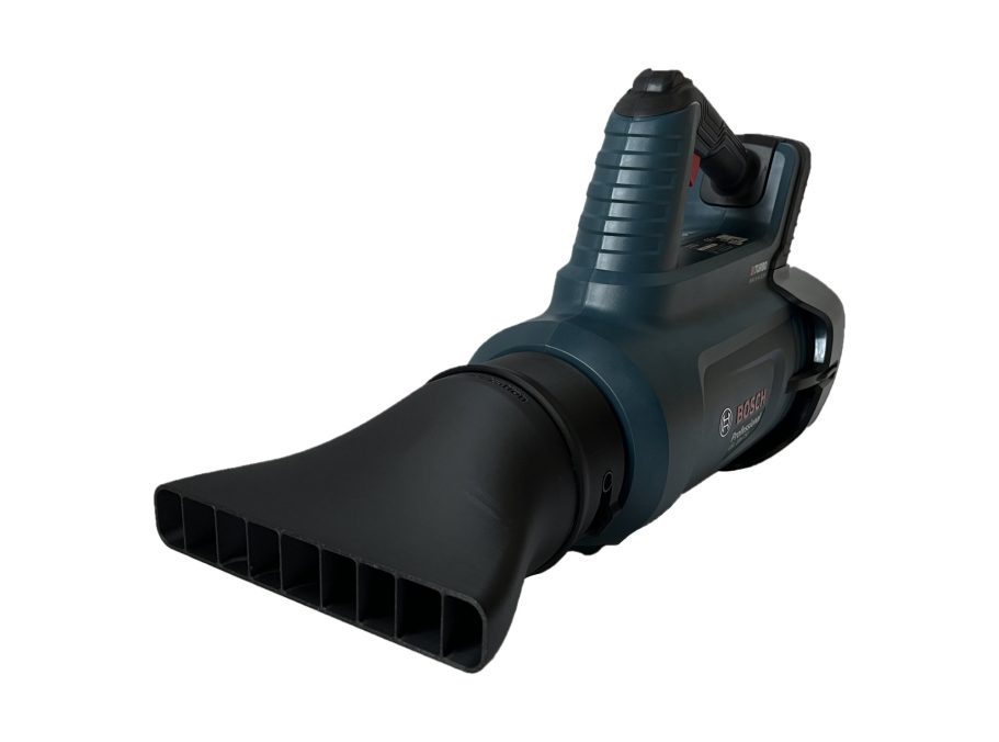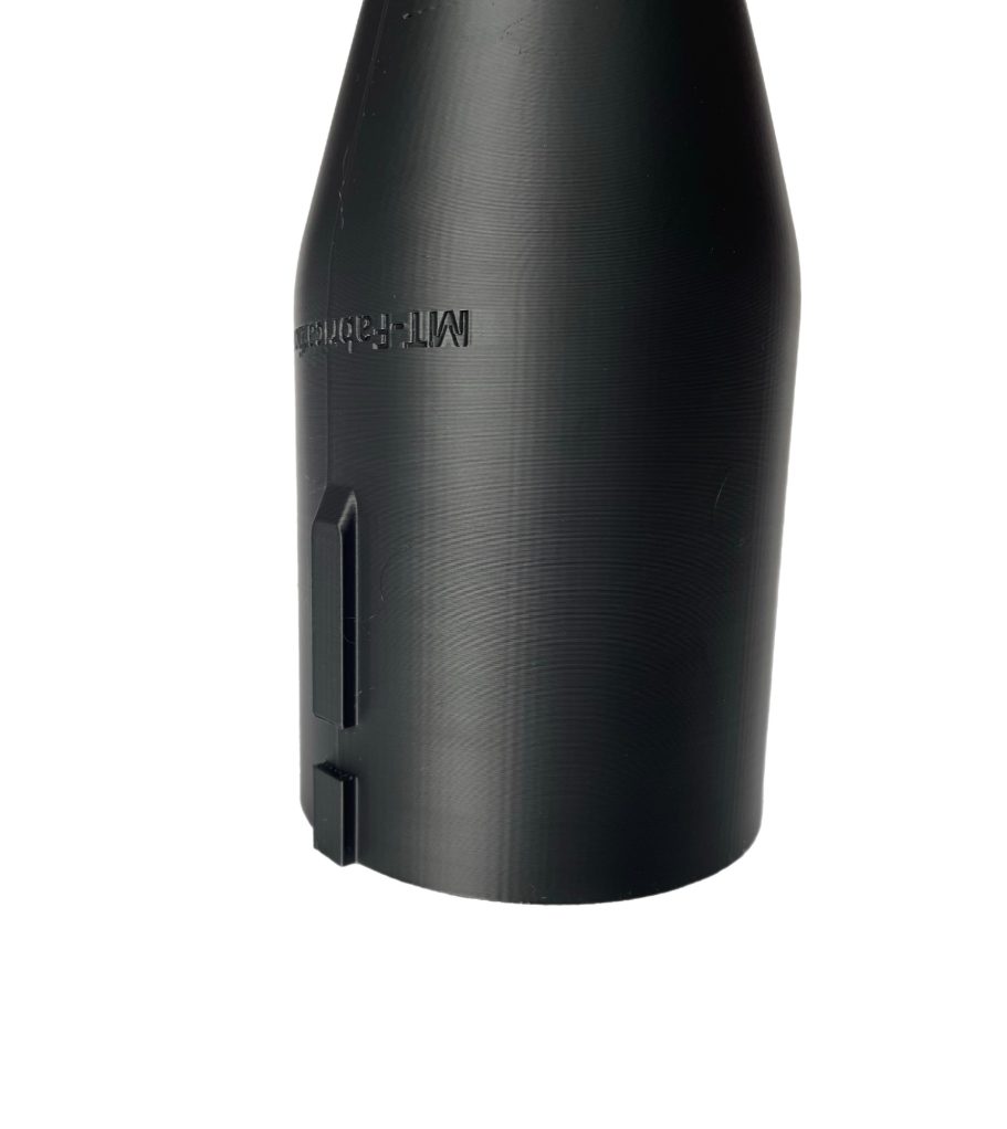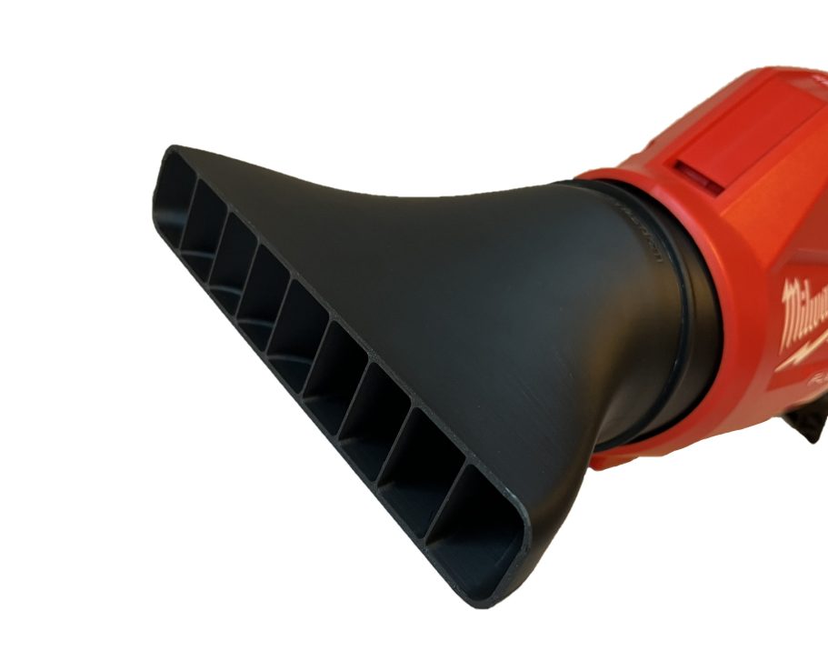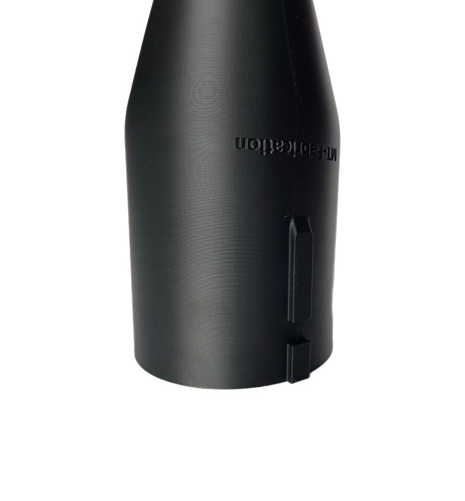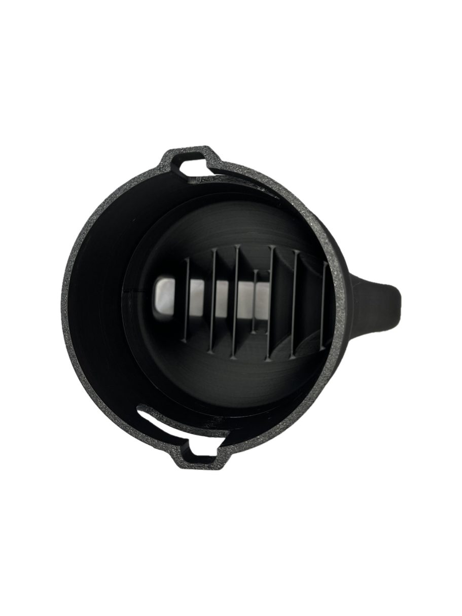 Durch die im CAD designte Form und die integrierten Finnen, wird die Luft beschleunigt und gleichmäßig verteilt. Der zweiteilige Aufbau ermöglich es den Trichter 360 Grad zu drehen und im Winkel auf die jeweilige Situation anzupassen.